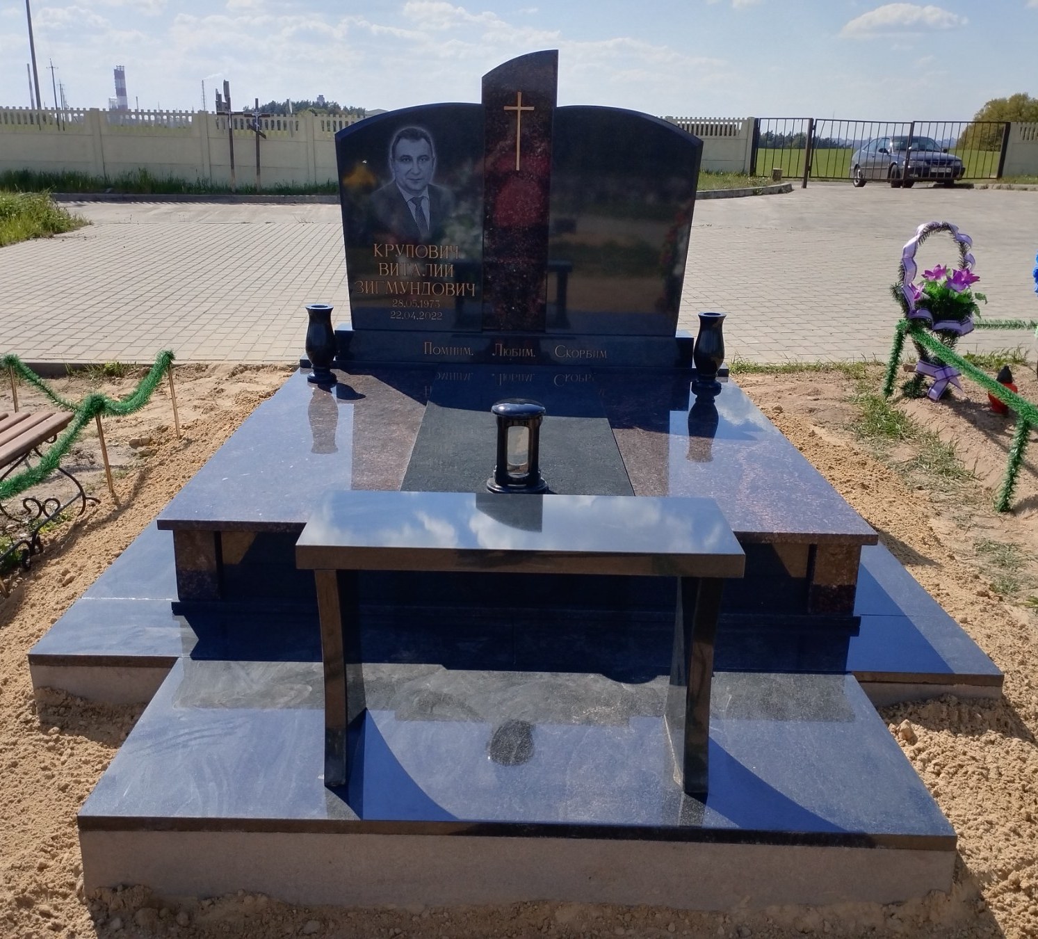 Стела 100*50*5 фигурная и гранитный крест по центру.